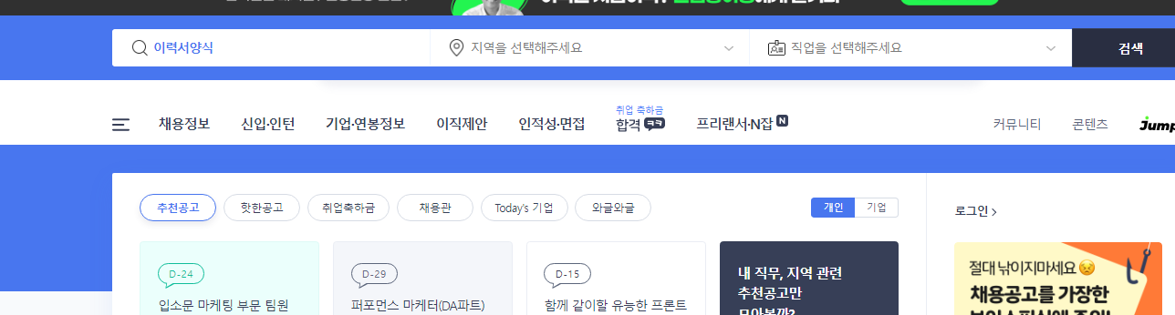 먼저 인크루트 홈페이지에 접속을 합니다.