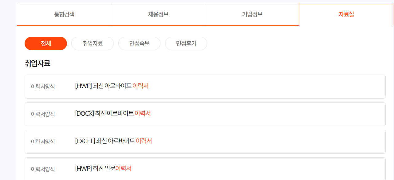 아르바이트뿐 아니라 여러 형식의 이력서도 다운로드하실 수 있어요