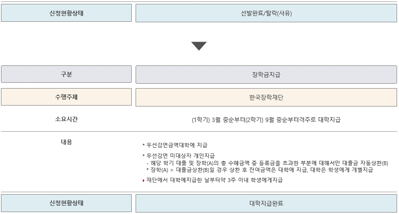 - 잘못된 대학명과 학적(신입생, 편입생, 재입학생, 재학생)으로 신청할 경우 심사가 지연되거나 수혜 불가