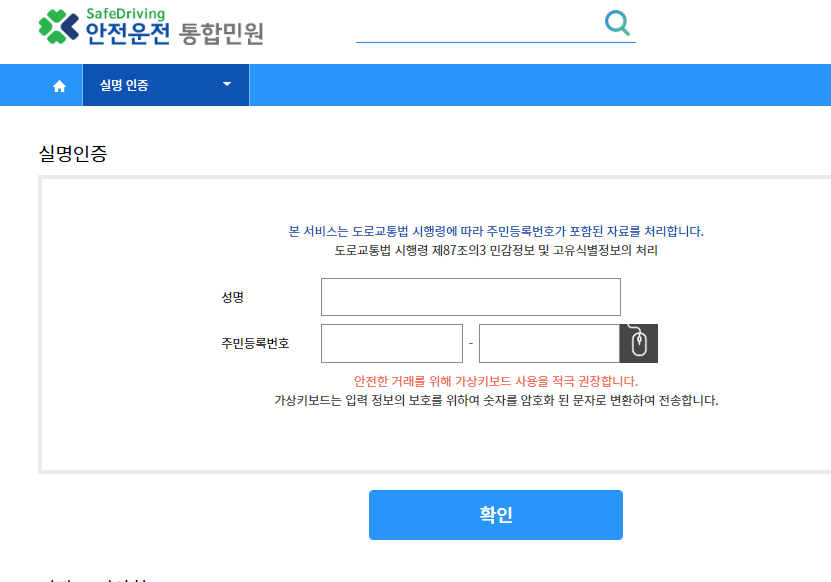 아래 안전운전 통합민원 홈페이지를 이용하여 재발급이 가능하며 아래 사진을 보며 잘 따라오시면 간단하게 신청이 가능합니다.