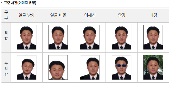 - 얼굴 방향은 정면을 응시하고 기울어지지 않은 사진