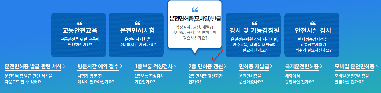 클릭하고 나면 아래 2종 면허증 갱신을 클릭합니다.