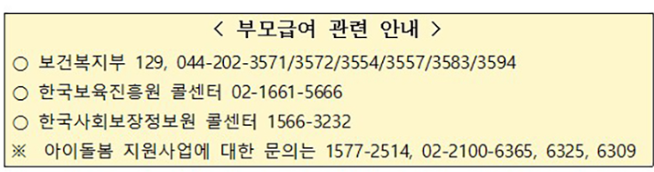 부모급여 관련 콜센터 및 지원 사업 문의 번호는 아래 둘테니 참고 하시길 바랍니다.