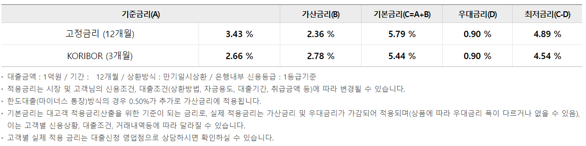 대출금리 및 우대금리 조건