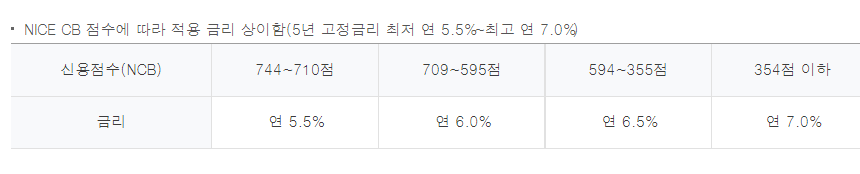 - 신청일 현재 기준 NICE,CB 744점 이하인 분