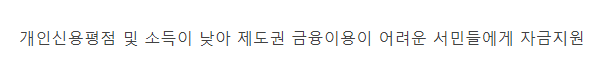 미소금융은 정부에서 하는 정책서민금융상품입니다.