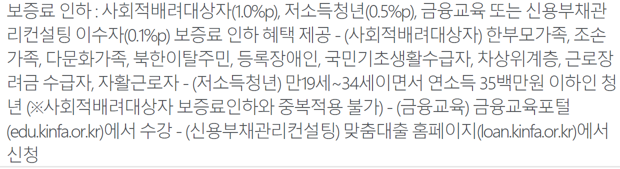 대출 금리 및 보증료 / 우대금리 조건