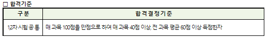 경영지도사의 합격기준은 1,2차 시험 공통으로 매 과목 100점을 만점으로 하여 매 과목 40점이상, 전 과목 평균 60점 이상 득점하여야 합격이 가능합니다.