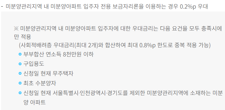 대출은 받은날부터 만기까지 고정금리가 적용되며 우대금리 조건은 아래와 같습니다.