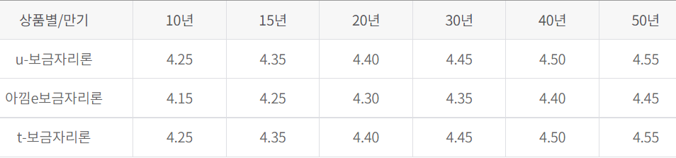 보금자리론은 신규주택구입 용도 및 전세자금 반환, 기존주택담보대출 상환용도로 신청이 가능하며, 대출 받은날로 부터 만기 까지 고정금리가 적용됩니다.