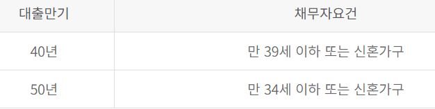 단 40년 ,50년 만기는 신청일 현재 채무자가 아래의 요건을 충족하는 경우에는 취급가능합니다.