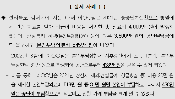 이에 따라 많게는 몇백만원 적게는 몇십만원의 초과 의료비에 대한 환급을 받을 수 있게 되었습니다.