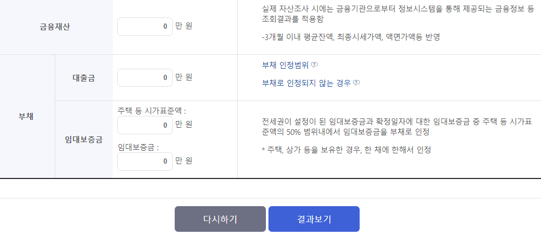모든 정보를 입력한 후 결과보기를 클릭하면 자신의 소득분위를 알 수 있습니다.