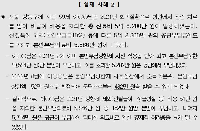 사후급여란 개인별 상한액기준보험료 결정 전후로 나누어 개인별 본인부담상한액을 초과하는 금액을 건강보험공단에서 환자에게 직접 지급하는 것을 말합니다.