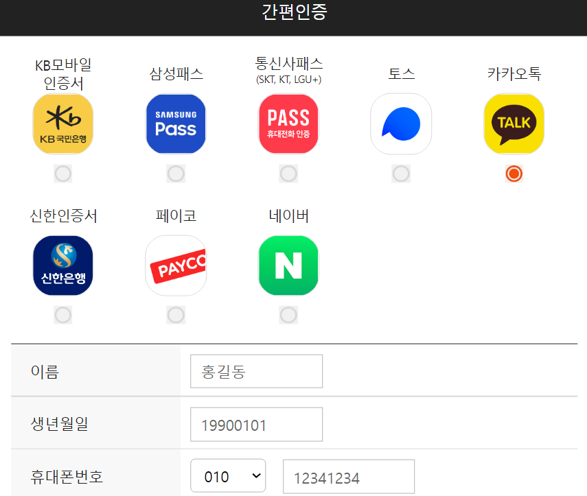 저는 참고로 카카오톡 간편인증으로 로그인 했습니다.