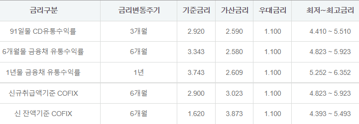 대출 금리는 아래와 같습니다.