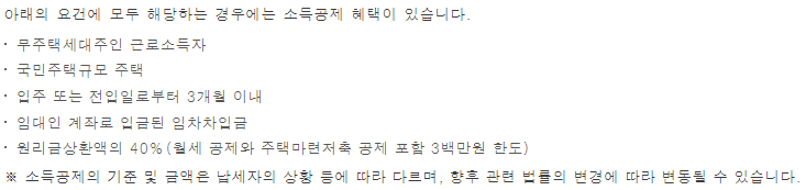 대출 대상은 주택임대차계약을 체결한 국민인 거주자로 아래의 조건을 모두 충족하는 분에 한하여 가능합니다.