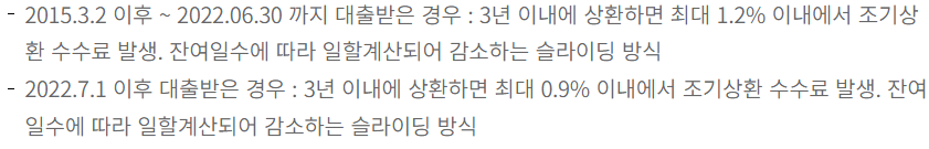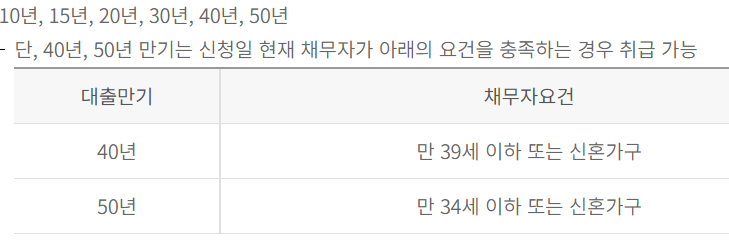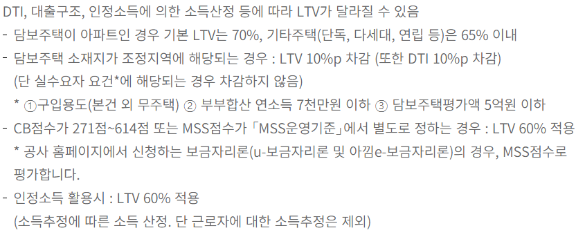 - 신용의 경우 본인 또는 배우자가 한국신용정보원 "신용정보관리규약"에서 정하는 신용정보가 남아 있으면 대출 신청이 불가능합니다.(단 배우자의 소득이 없을 경우 배우자에 대해서는 신용정보를 확인하지 않음)