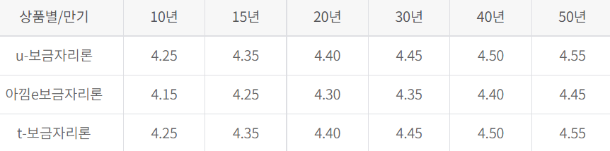보금자리론은 U-보금자리론, 아낌e보금자리론,t-보금자리론 3가지로 설명은 위 사진에 나와 있습니다.