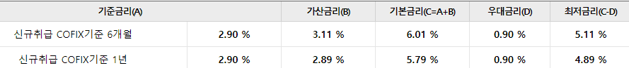 대출금리는 COFIX기준금리를 기준으로 합니다.