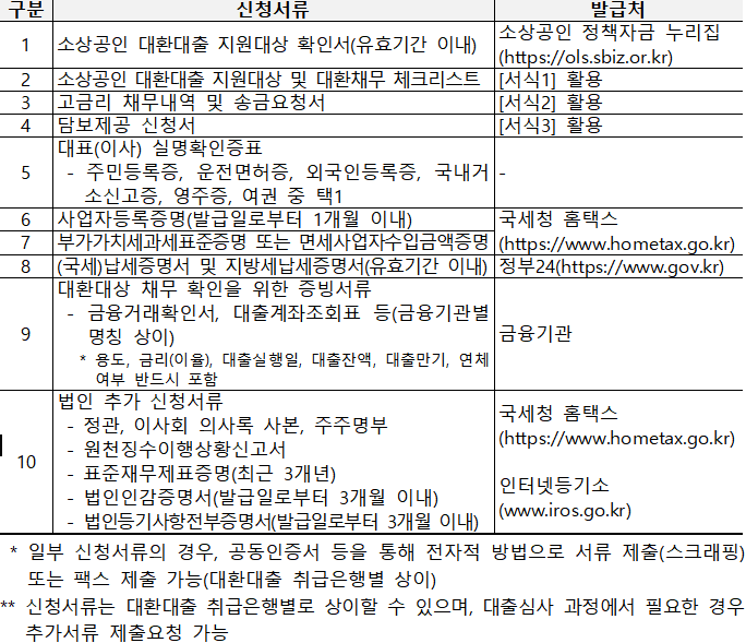 소상공인 대환대출 지원대상 확인서 발급방법 대환대출 신청방법