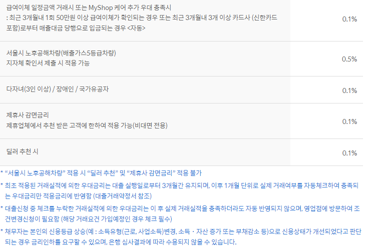 적용되는 금리의 계산은 기본금리에서 우대금리를 차감하면 됩니다.