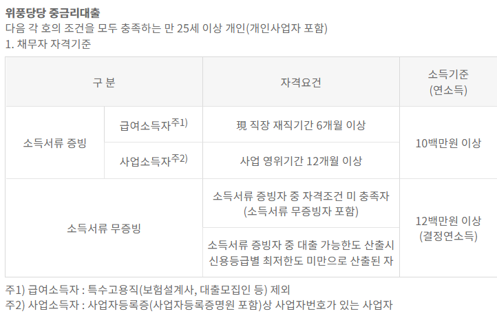 중금리신용대출은 소득서류 증빙 가능 일때와 무증빙일 때와 한도가 위와 같이 차이가 납니다.