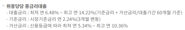 실제 대출 금리 및 한도는 신청하면 2~3분이면 조회됩니다.