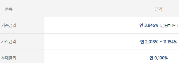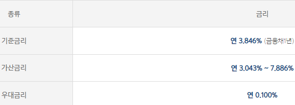 위의 우대금리조건은 금융거래정보 제공 동의 시 0.1% 우대금리가 적용됩니다.