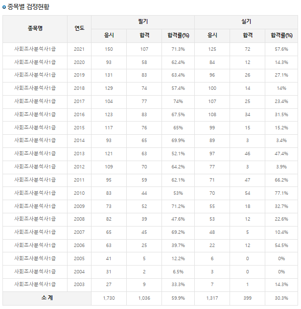 사회조사분석사 1급 응시자격 합격률 합격팁 연봉