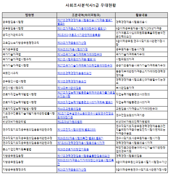 위의 이미지는 실제 사회조사분석사1급 우대 현황이니 참고하시길 바랍니다.