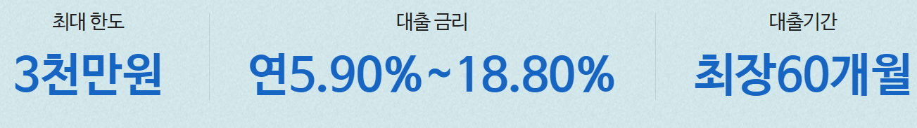 대출금리는 연 5.9% ~ 18.8% 입니다.