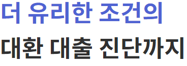 단 1분! 1금융권 포함 60여개 금융사의 200여개 대출을 쉽게 비교하고 신청해 보세요. 갖고 있는 대출도 편하게 관리 할 수 있어요.