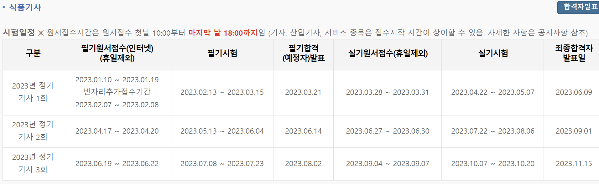 식품기사 시험일정 및 과목