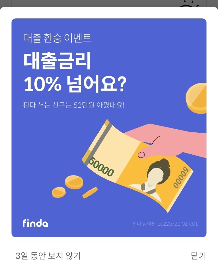 신청은 아래 핀다 App 설치 후 대출비교 및 대환대출을 알아볼 수 있습니다.