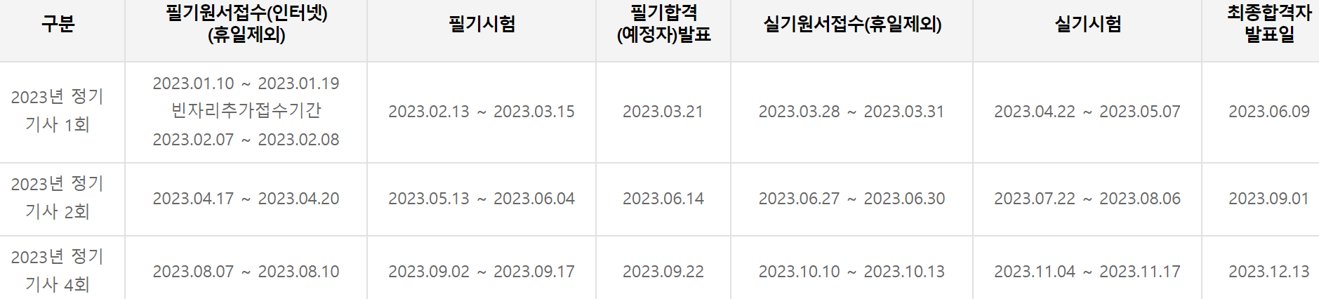 필기시험에 합격을 해야 실기시험 자격이 주어지며, 필기합격률은 40% 후반대의 모습을 보이고 있어 시험대비를 잘해야 합니다.