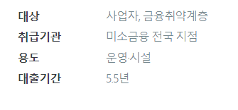 그 중 제가 알려드릴 운영자금대출은 미소금융 운영시설자금입니다.