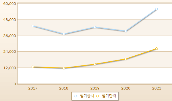 문제는 문제은행 방식으로 엄청나게 어려운 시험은 아니지만 합격률이 그렇게 높지 않은 편입니다.