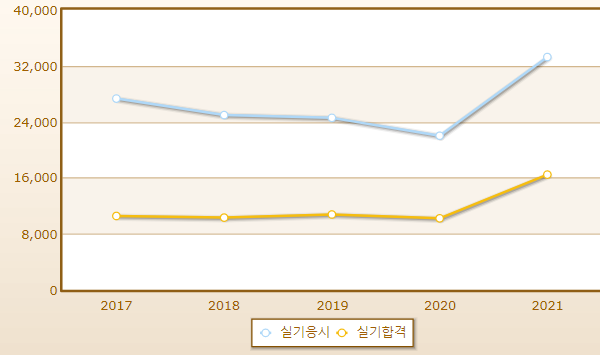 실기시험 합격률도 그 정도로 난이도가 엄청 높진 않는 시험입니다.