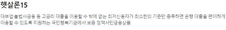1. 서민금융진흥원 햇살론15