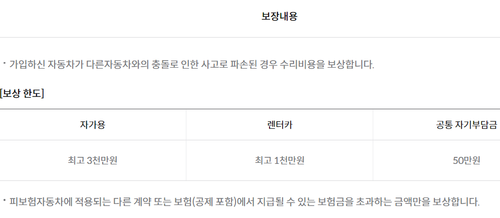 위 사항들은 기본 담보 사항이며 선택 특약 상품은 따로 있으니 가입 시 필요하다 싶으면 가입하셔도 상관 없습니다.