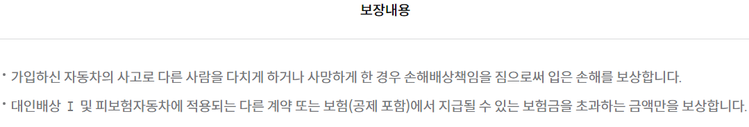 대인배상은 다른 사람에게 상해 및 사망 등 손해를 입힌 경우 보상을 할 수 있습니다.