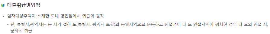 - 대출 접수일 현재 공공임대주택에 입주하고 있는 경우 불가 단 대출신청 물건지가 해당 목적물인 경우 또는 대출신청인 및 배우자가 퇴거하는 경우엔 대출 가능