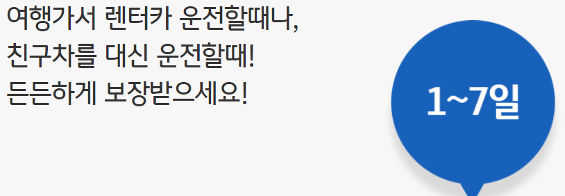 여행을 가서 렌트카를 빌리거나 가족 및 친구들의 자동차를 갑자기 운전해야하는 경우가 생기거나 할 때 1일 단위로 최대 7일까지 가입이 가능한 하루 자동차보험 정보에 대해 알려드리겠습니다.