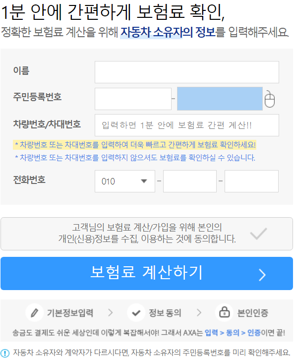 보험료 계산은 쉽게 할 수 있으며, 기존 자신의 자동차보험료와 한번 비교해보시길 바랍니다.