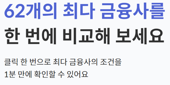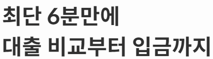 단 1분! 1금융권 포함 60여개 금융사의 200여개 대출을 쉽게 비교하고 신청해 보세요. 갖고 있는 대출도 편하게 관리 할 수 있어요.