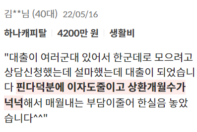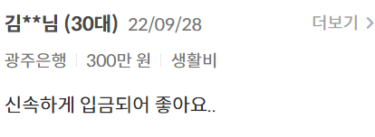 위와 같이 사람들이 직접 대출을 진행하고 남긴 후기들도 있습니다.