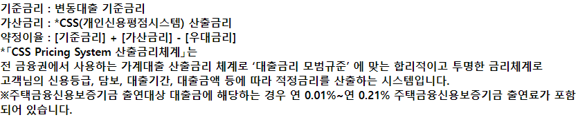 - 우리은행 대출(보증채무 포함),다른은행대출(보증채무 포함),현금서비스는 모두 한도에서 차감