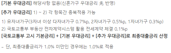 먼저 신청해보고 금리 및 한도가 나오면 잘 고민하고 신청하시면 되며, 시중은행보다 금리가 싼 국토교통부의 정책자금대출이기 때문에 정말 좋은 상품입니다.