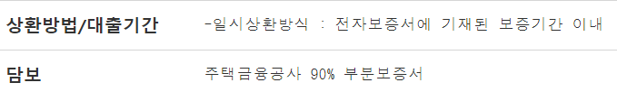 이 상품은 한국주택금융공사에서 보증을 해줘야 하는 상품으로 자세한 사항은 한국주택금융공사 홈페이지 및 스마트뱅킹을 통해 확인 가능하며, 가장 간단한 방법은 은행앱을 통해 신청해보는 것이 가장 정확합니다.